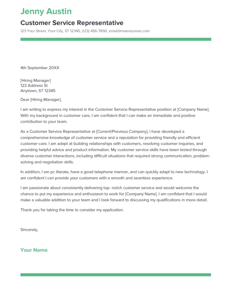 A customer service representative cover letter is your first opportunity to make a strong impression on a potential employer. It is a crucial document that accompanies your resume and provides a detailed look at your skills, experience, and personality. A well-crafted cover letter can significantly increase your chances of getting an interview and ultimately landing the job. In this guide, we will explore how to create a compelling customer service rep cover letter that effectively highlights your qualifications and distinguishes you from other candidates. We will cover everything from formatting and content to common mistakes to avoid, as well as provide sample letters to guide you.